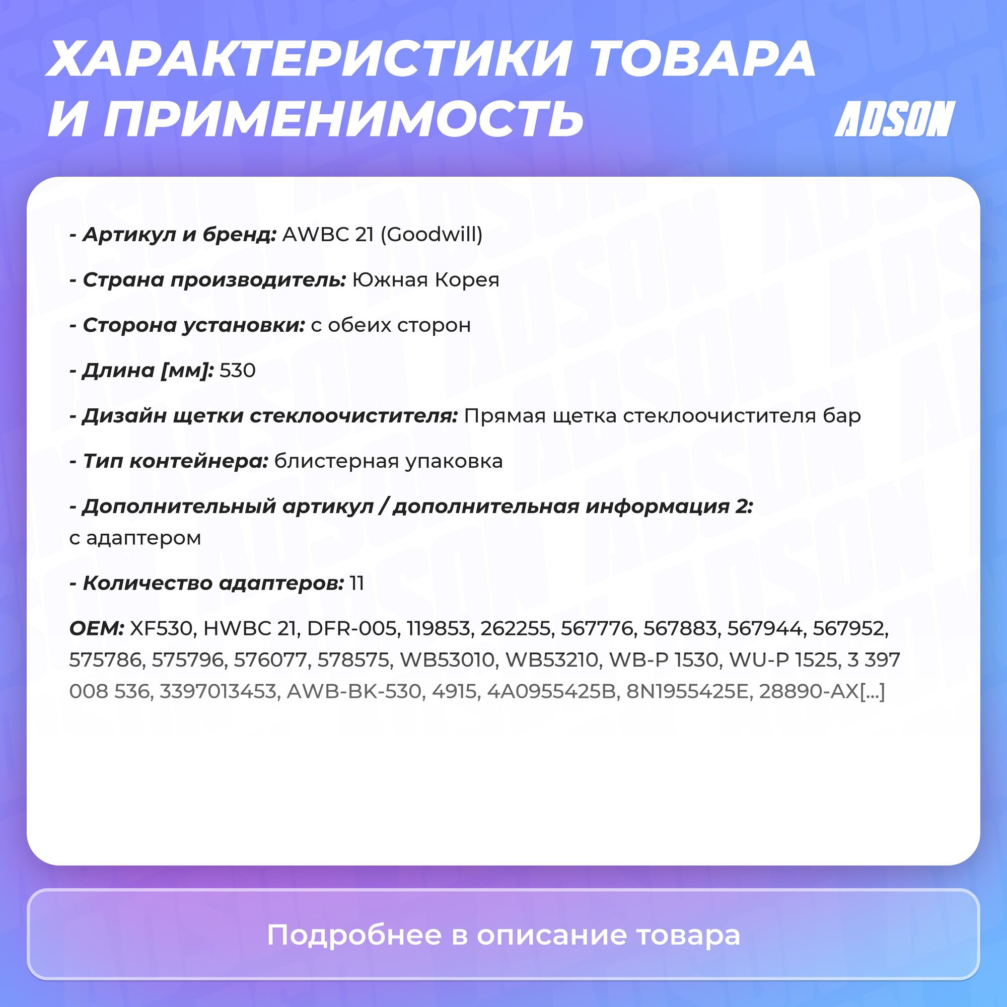 GOODWILL AWBC 21 Щётка стеклоочистителя бескаркасная 530 мм