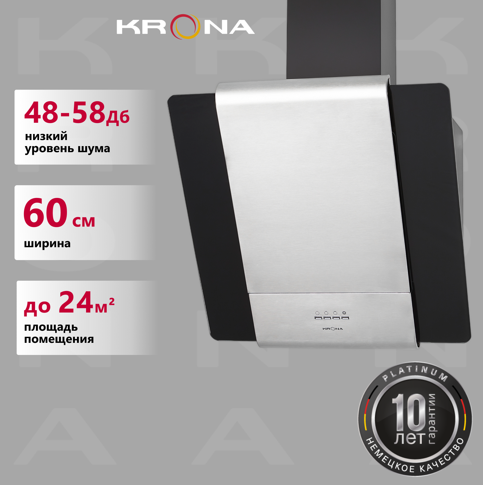 KRONA TALLI 600 inox/black glass 3P Вытяжка кухонная