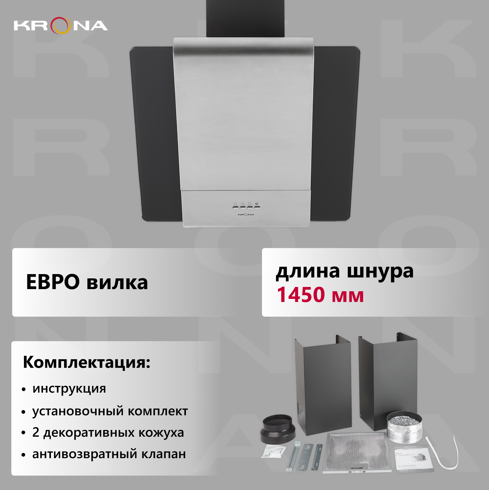 Вытяжка каминная Krona Talli 600 inox/black glass 3P нержавеющая сталь/черный управление: кнопочное