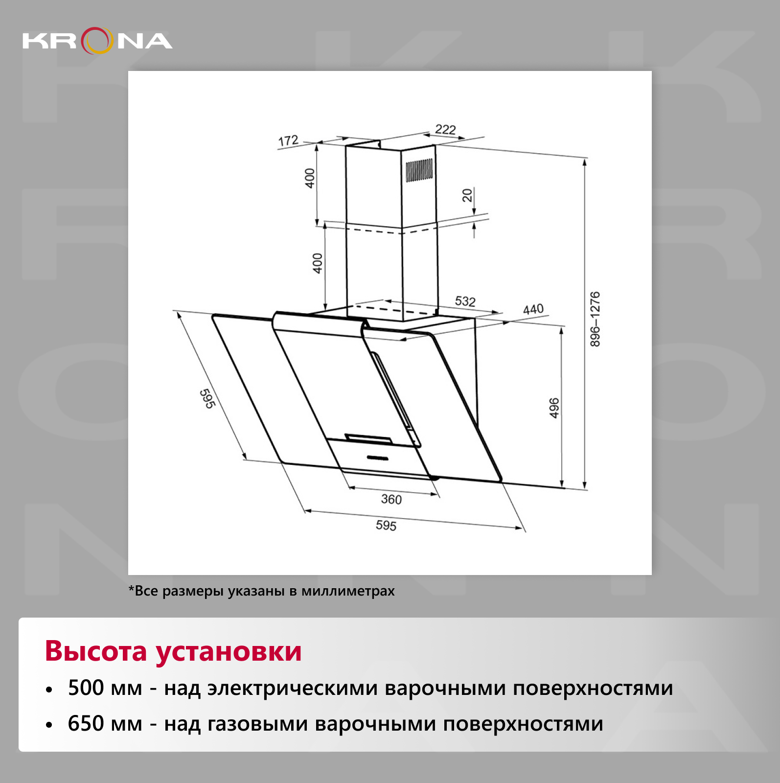 СохранитьКаминная вытяжка Krona TALLI 600 inox/black glass 3P интересное: