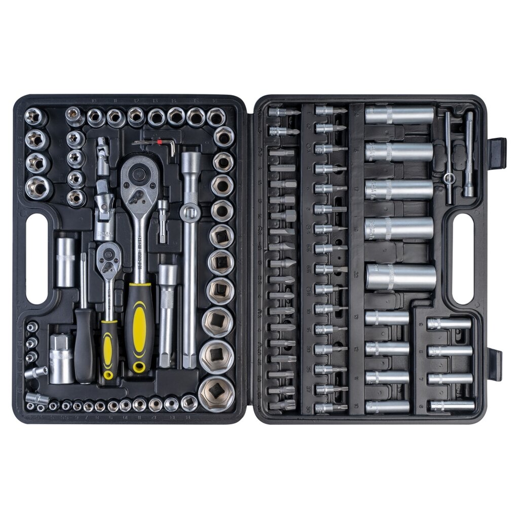 Набор инструментов, черный/желтый, 1/4", 1/2", 28 см x 38 см x 7 см, 76 торцовых головок