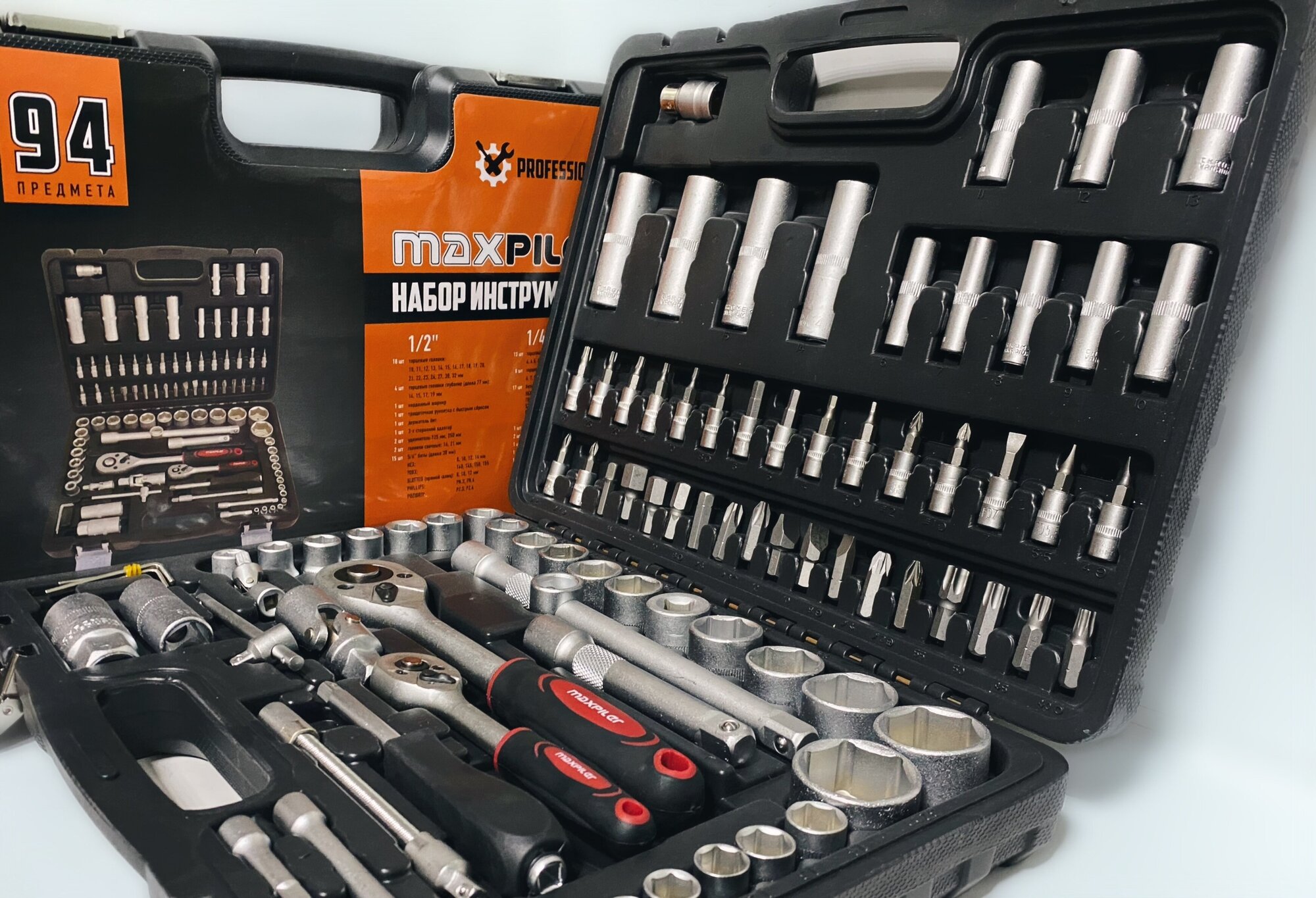 Набор инструментов "MAXPILER" MXT-94-SET (94 предмета, 1/2" и 1/4", CrV)