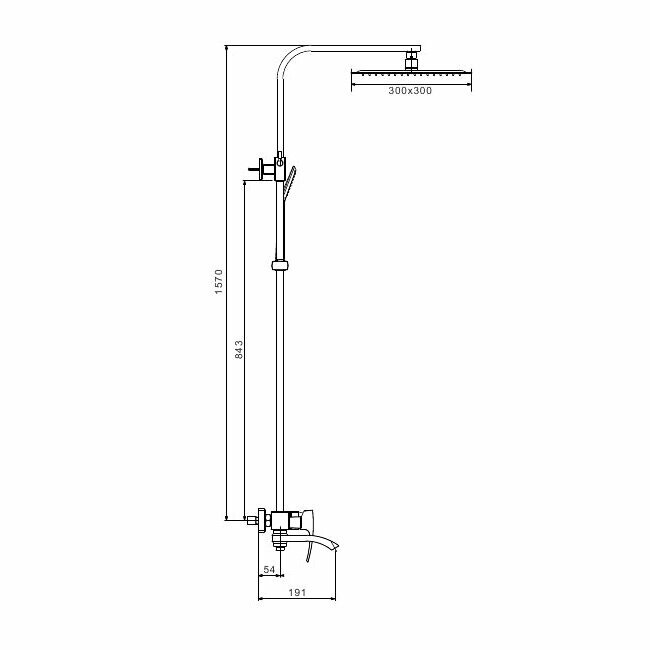 | Дополнительная информация | высота стойки для душа: 1570 мм; длина верхнего душа: 300 мм; ширина верхнего душа: 300 мм |
