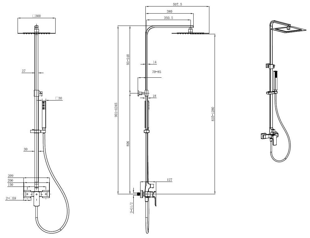 | Комплектация | верхний душ / лейка / шланг |