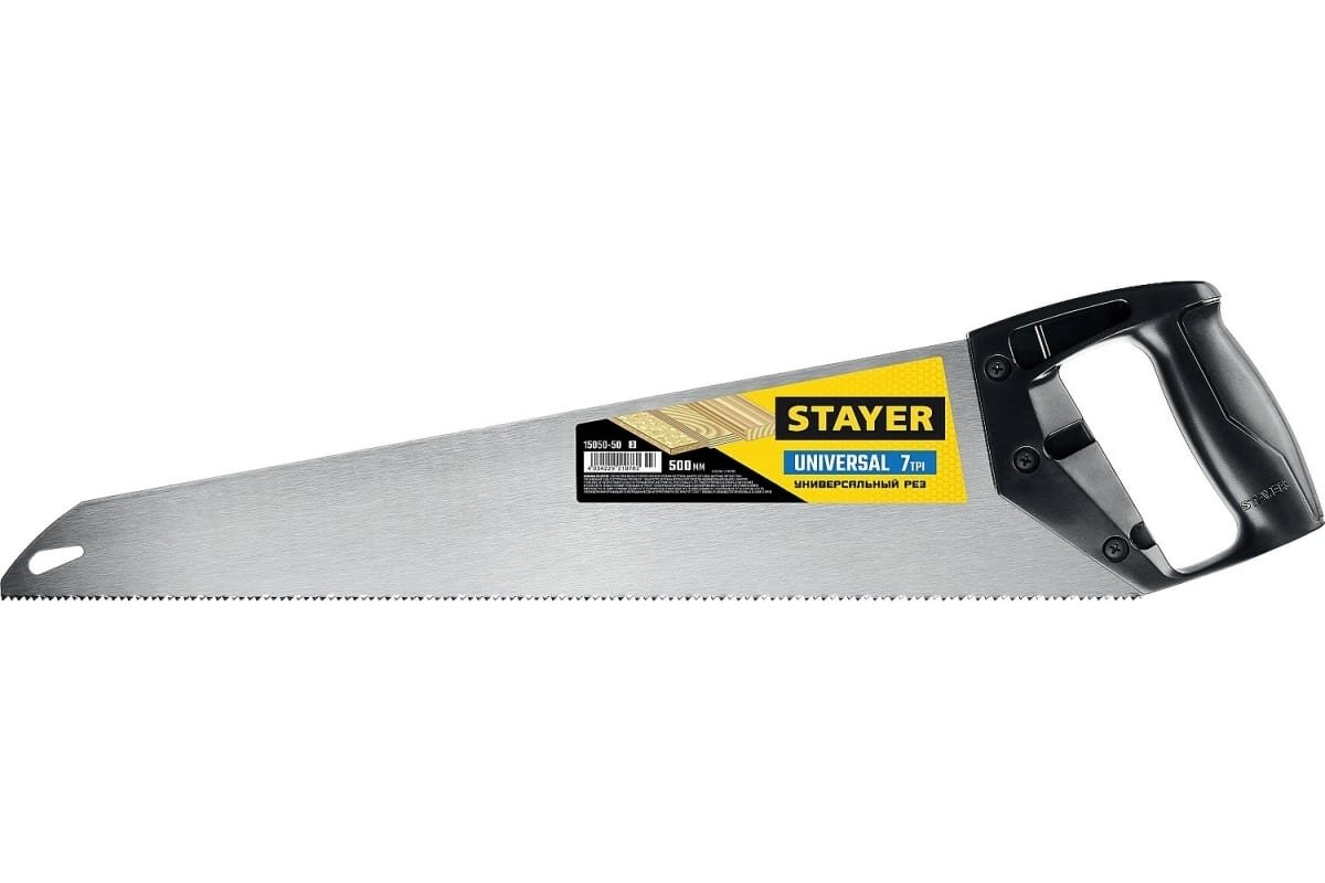 Ножовка универсальная STAYER (пила) Universal, 500мм,7TPI, закаленный зуб, рез вдоль и поперек волокон, д (1шт) (15050-50_z03)