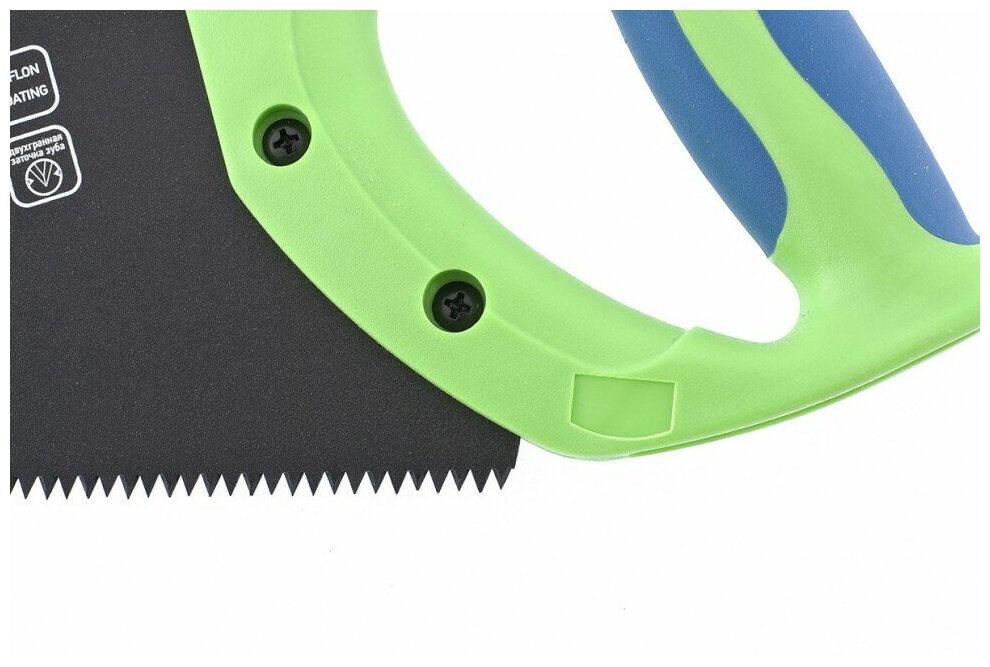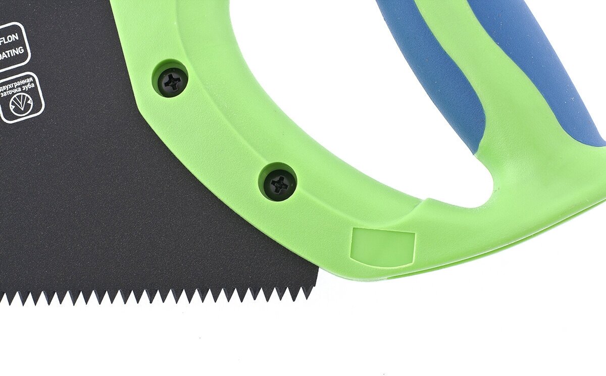 Ножовка по дереву "Зубец", 350 мм, 7-8 TPI, зуб 2D, кал.зуб, защ. покр., 2-х комп. рук-ка, СИБРТЕХ 23809