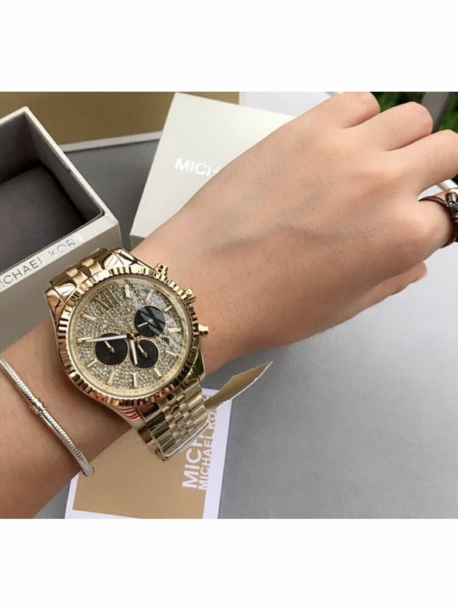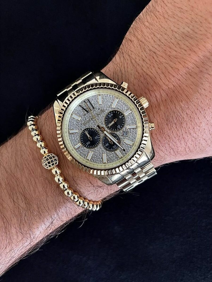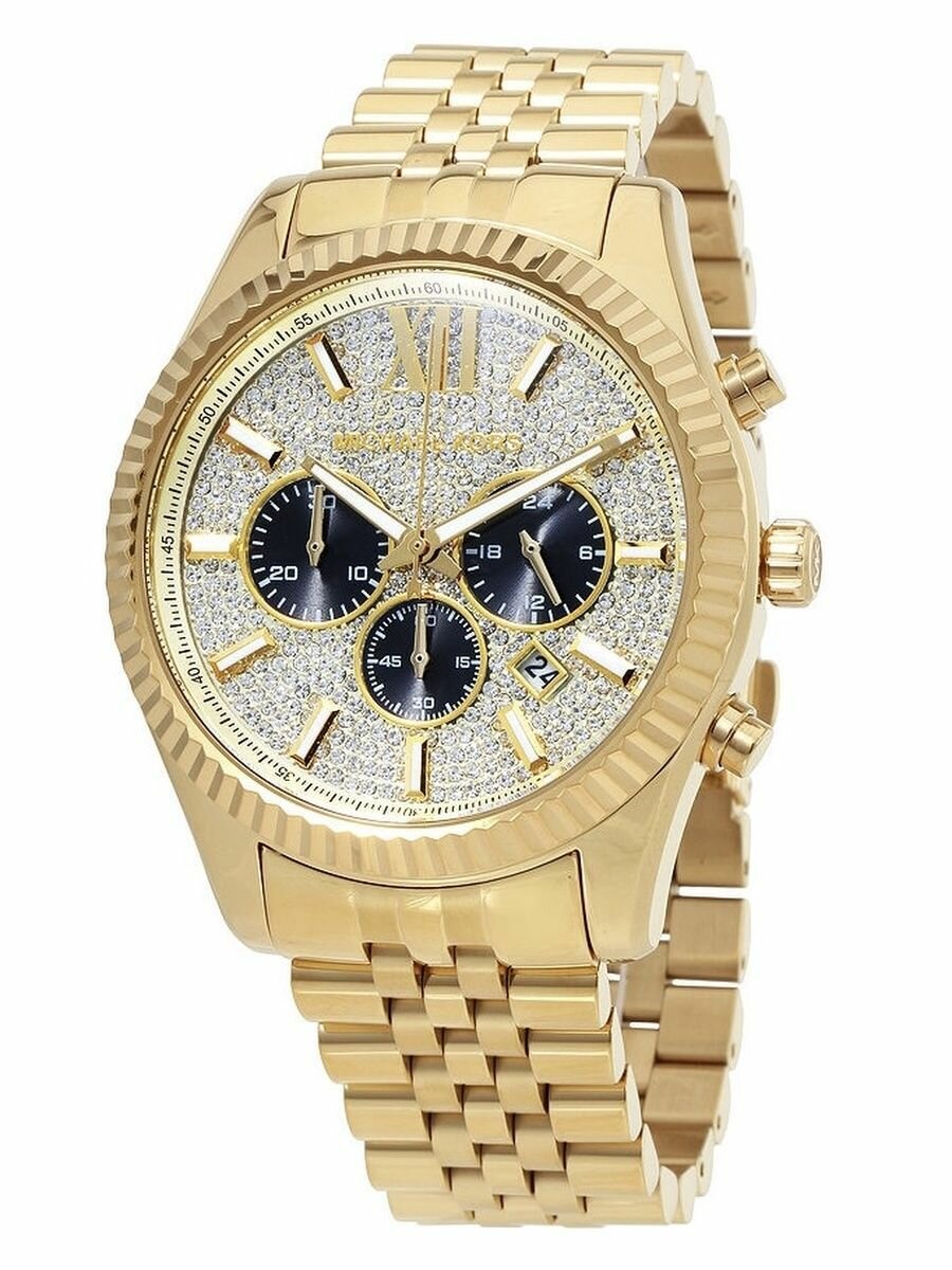 Часы наручные мужские Michael Kors со стразами Lexington золотые стальные