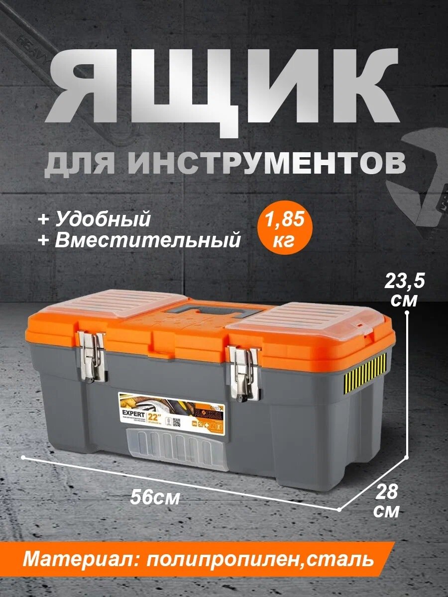 "Blocker" Контейнер-ящик для инструментов пластмассовый "Expert" 55,7х28,4х23,6см, металлические замки, серо-свинцовый/оранжевый (Россия)