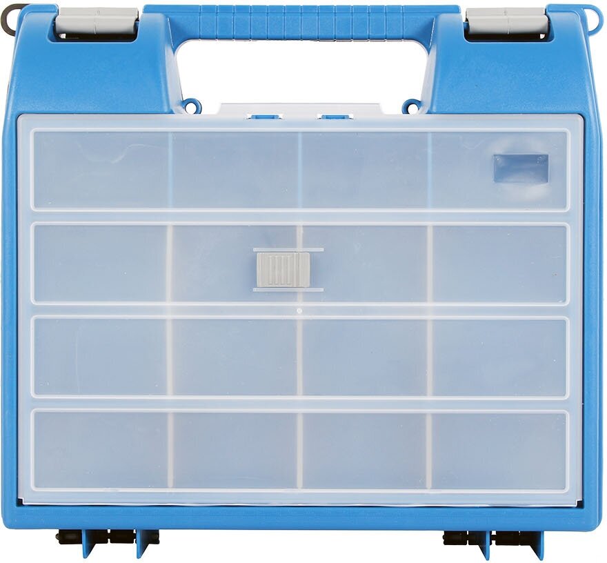 | Минусы: | Ручка тонковата, я туда килограм 20-25 кг насувал железа, болтов, гаек, шурупов. Органайзер так понравился что забил весь его )))И ОСОБЕННО защелка от вскрытия понравилась |