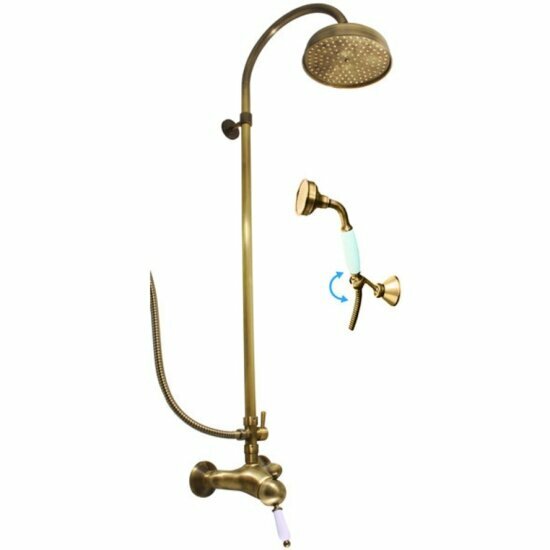 Смеситель RAV Slezаk Labe для душа с керамическим переключателем,душ. штангой 1300mm, ручная лейка,верхний душ 20см,душевой шланг 1,5м , металлический, двойной оплетки, бронзовый