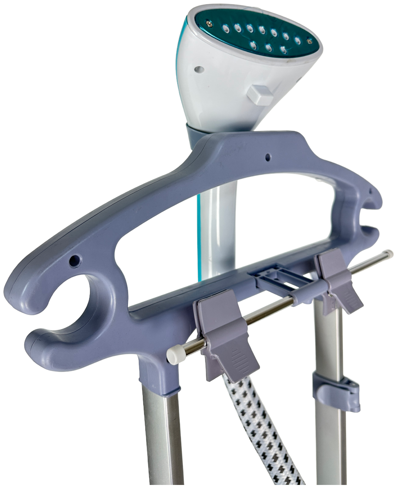 Вот сетевой шнур точно короткий! В комплекте на фото есть форма в виде рубашки, но она размером с ладонь, жаль не полноразмерная, Вешалка с прищепками всего на одном креплении, не нагружайте сильно! Нет защиты от накипи, поэтому только дистилированная вода! От накипи стал плеваться и упала мощность, а очистка только у официалов! |