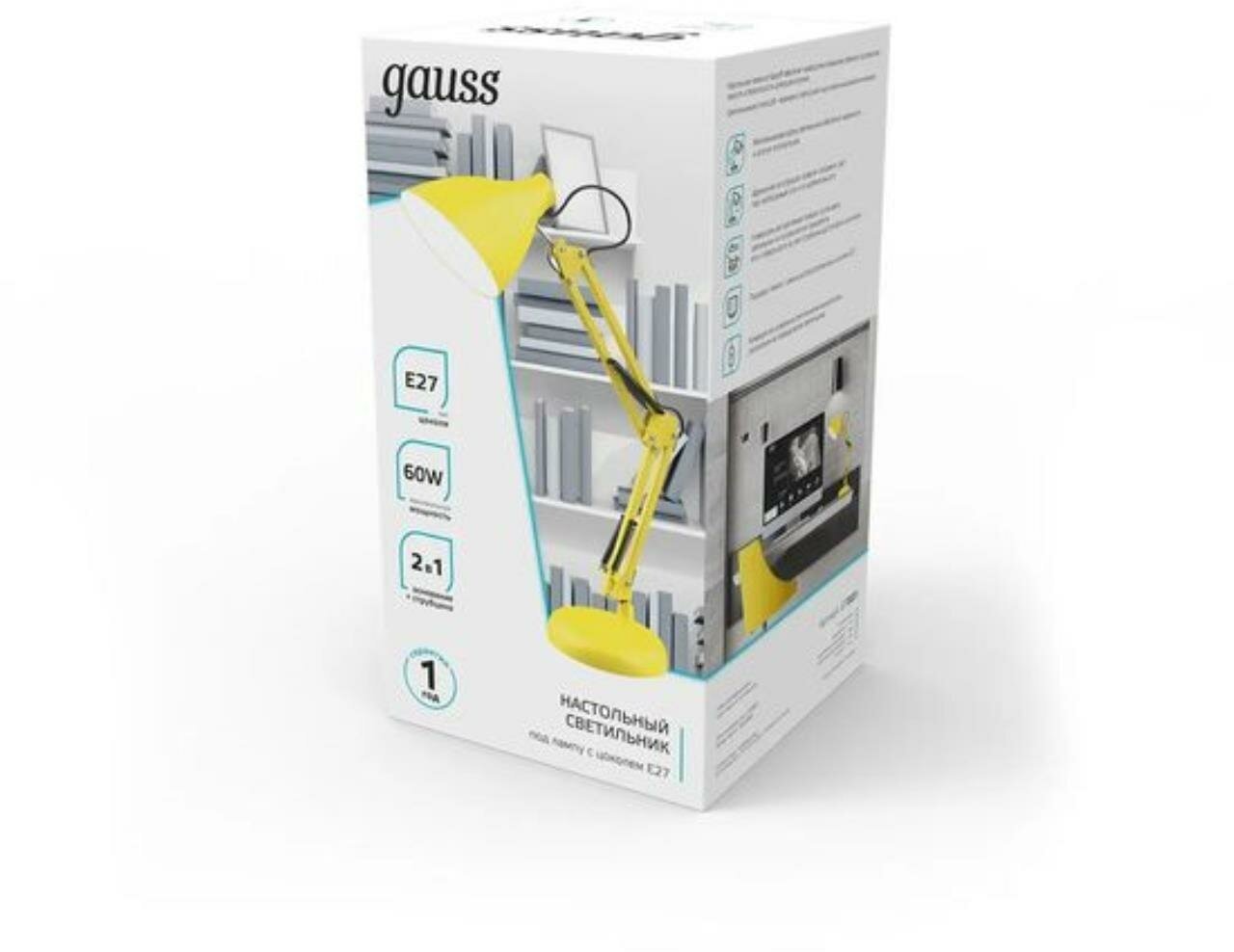 Настольная лампа Gauss GTL003 60W 220-240V E27 желтый струбцина и основание 1/12