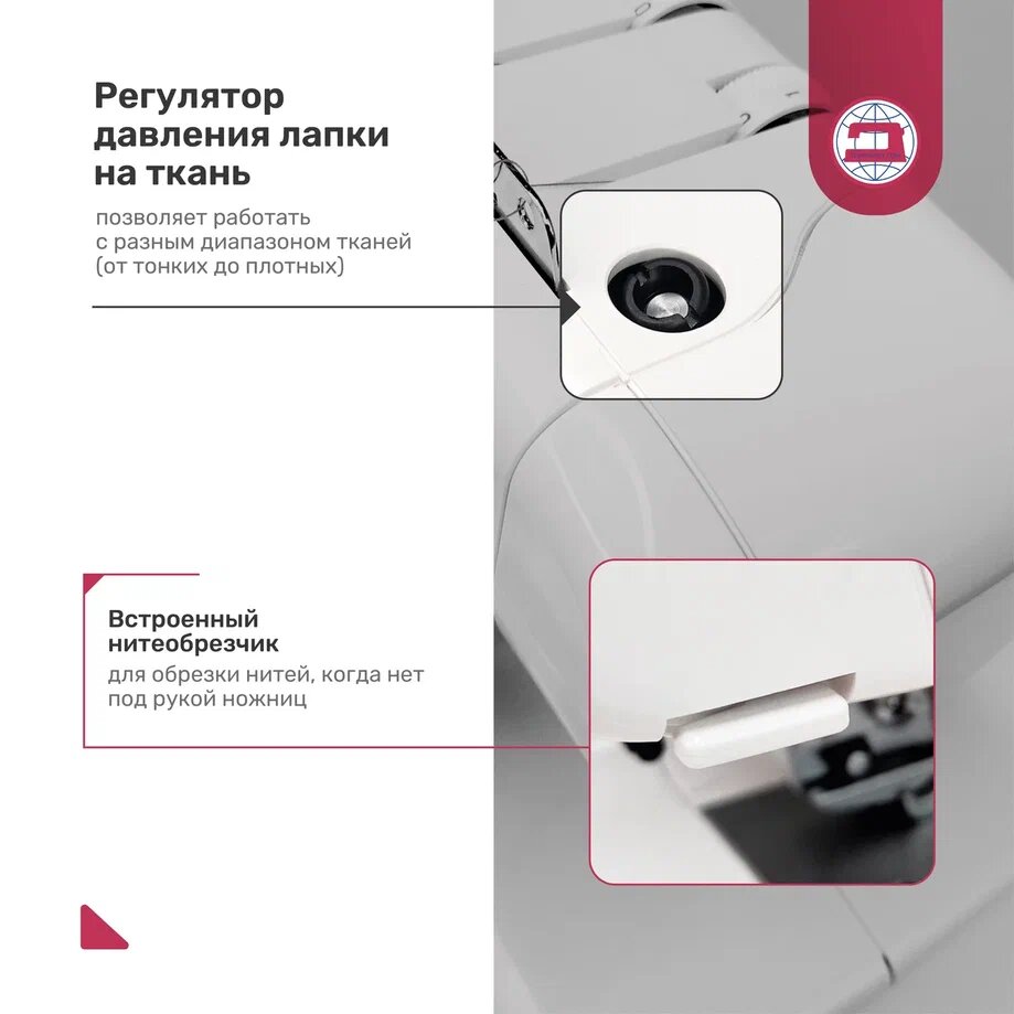 | Плюсы: | легкая в настройках, ровная, аккуратная строчка, хороший нож |