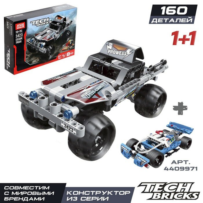 Конструктор Tech Bricks "Гоночный внедорожник с инерционным механизмом" 3423 для детей и взрослых, мальчиков, девочек 160 деталей