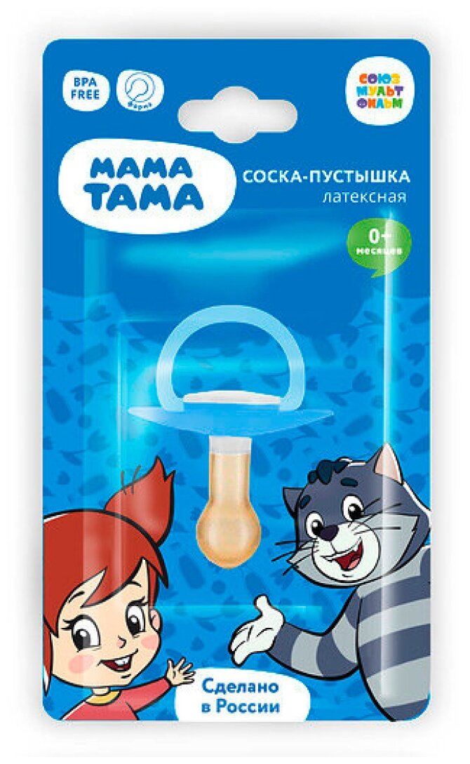 СохранитьСоска-пустышка мама тама классическая латексная 0-6 мес., "Матроскин", цвет:синий интересное: