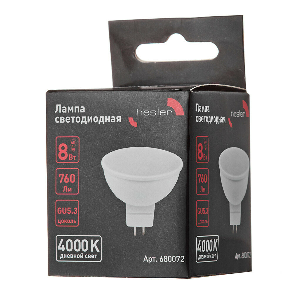 Лампа светодиодная Hesler 8 Вт GU5.3 рефлектор MR16 4000К естественный белый свет 230 В