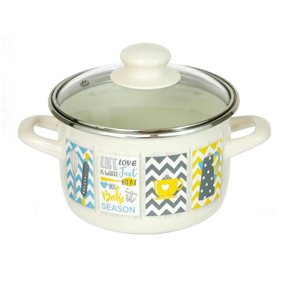 Кастрюля глубокая эмалированная со стеклянной крышкой, 2 л, Султана