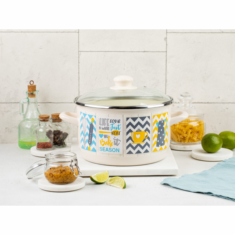 Кастрюля глубокая эмалированная со стеклянной крышкой, 4,75 л, Султана