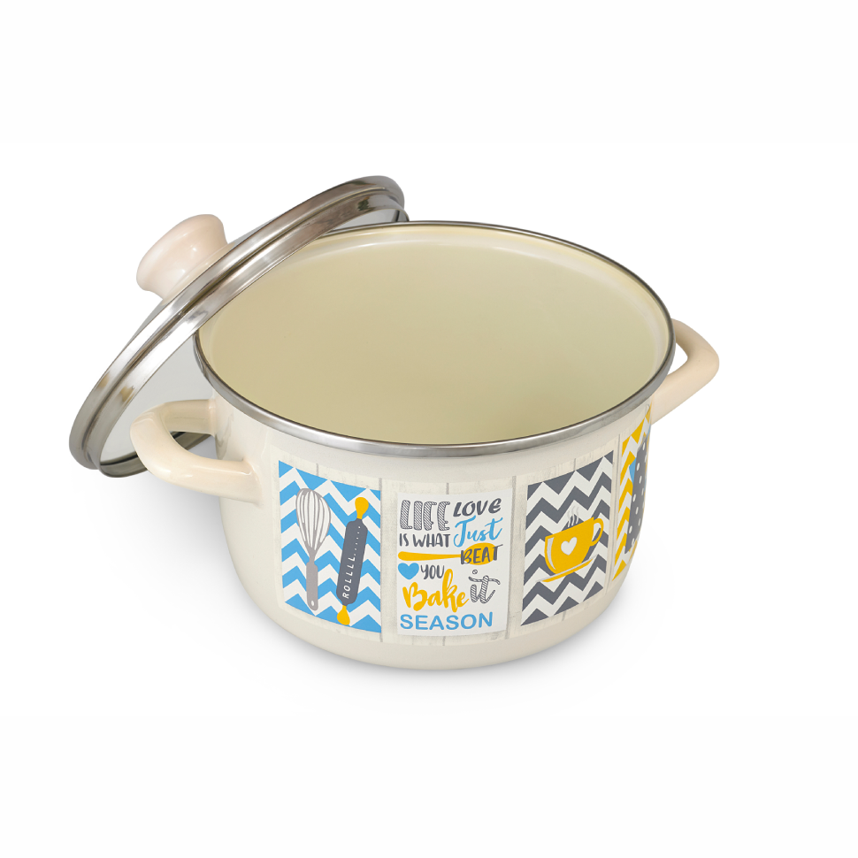 Кастрюля эмалированная с крышкой 2,16 л для всех плит