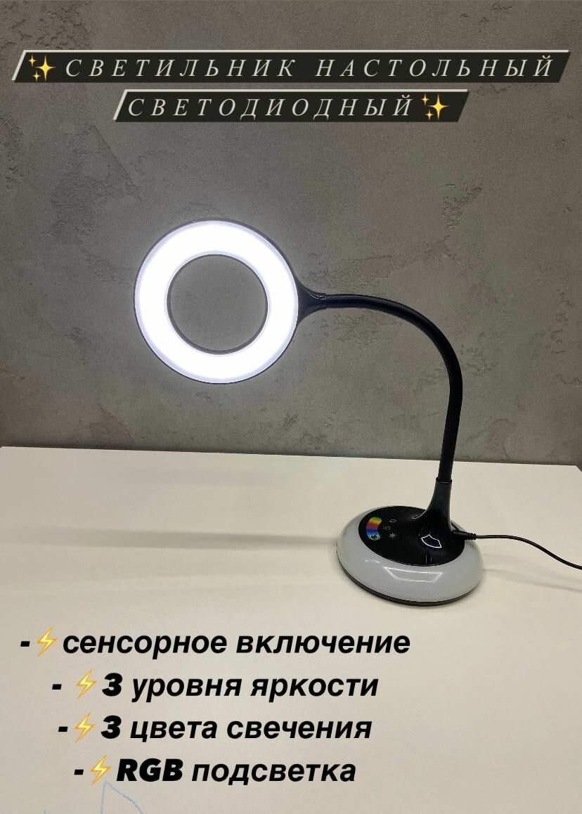 Настольный светодиодный светильник с RGB подсветкой, черный