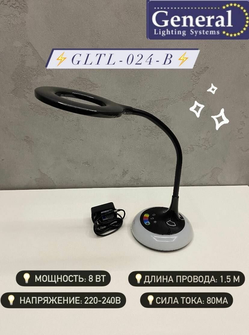 Лампа офисная светодиодная General GLTL-024-B, 8 Вт, черный