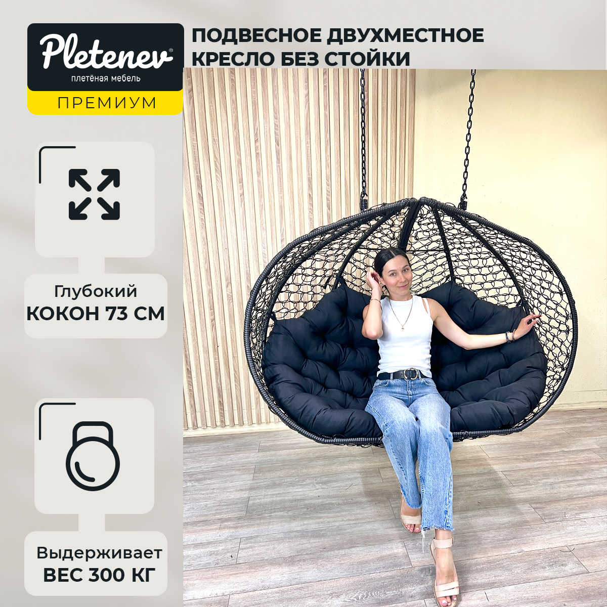 Подвесное кресло Pletenev Двухместное Черное подушка Черная без стойки интересное: