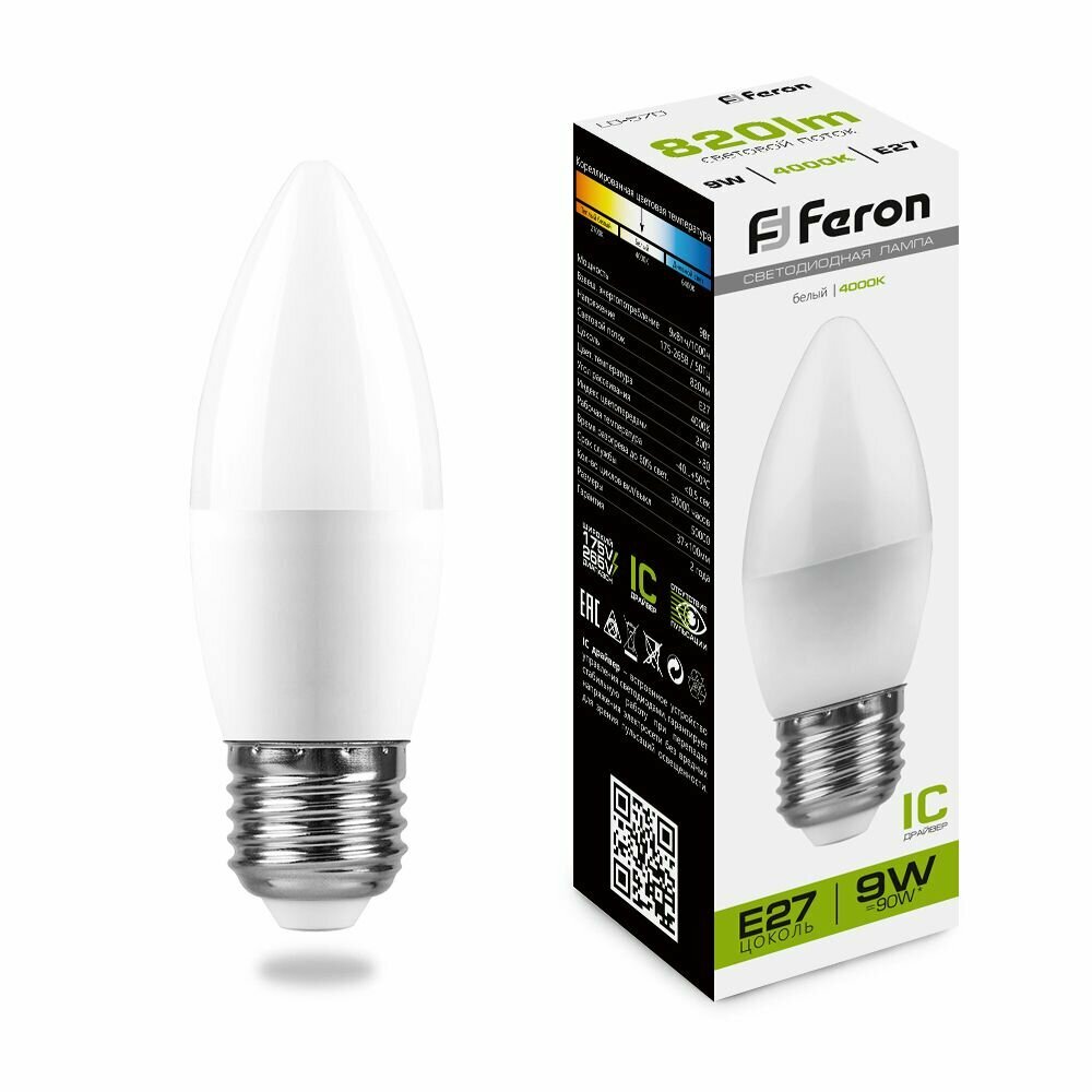 Feron свеча C37 E27 9W(820lm) 4000K 4K матовая 100x37, LB-570 25937 (арт. 694350)