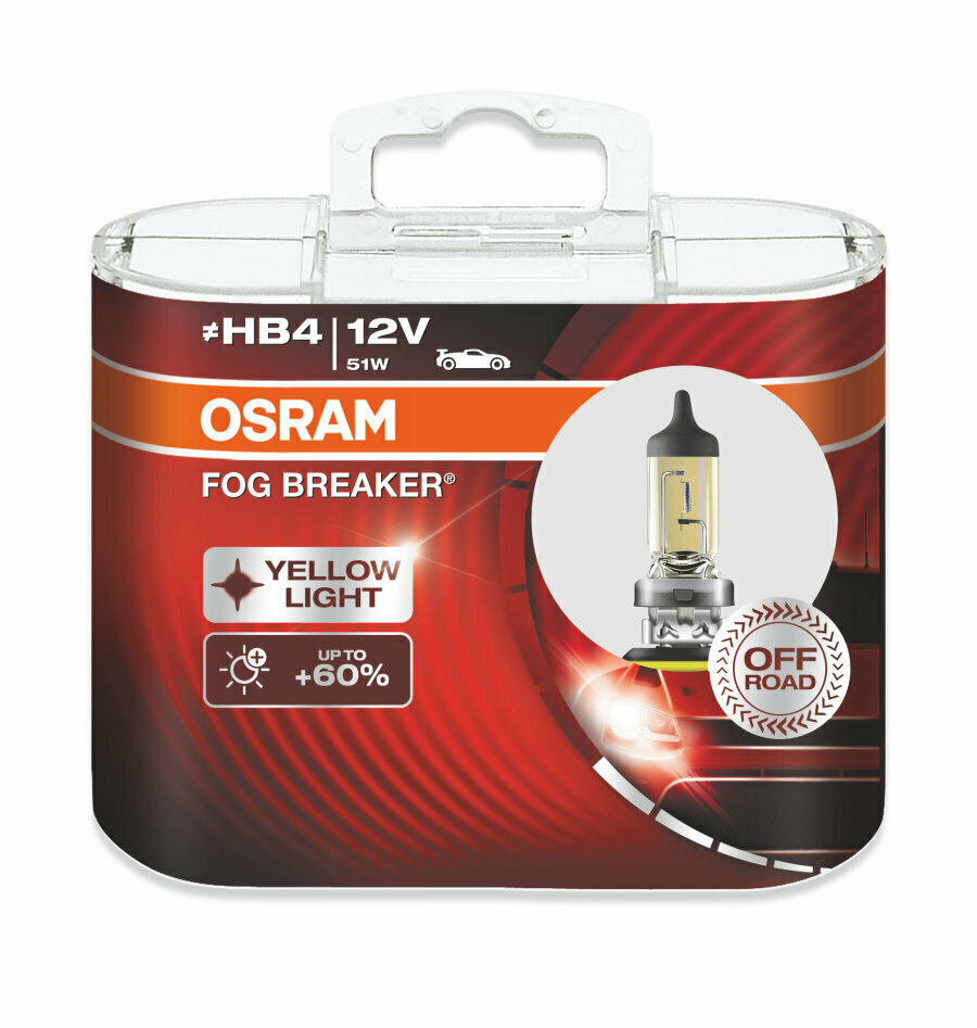 Лампаhb4 12v 51w Fog Breaker +60% P22d, Карт.2 Шт. Osram арт. 9006FBRHCB