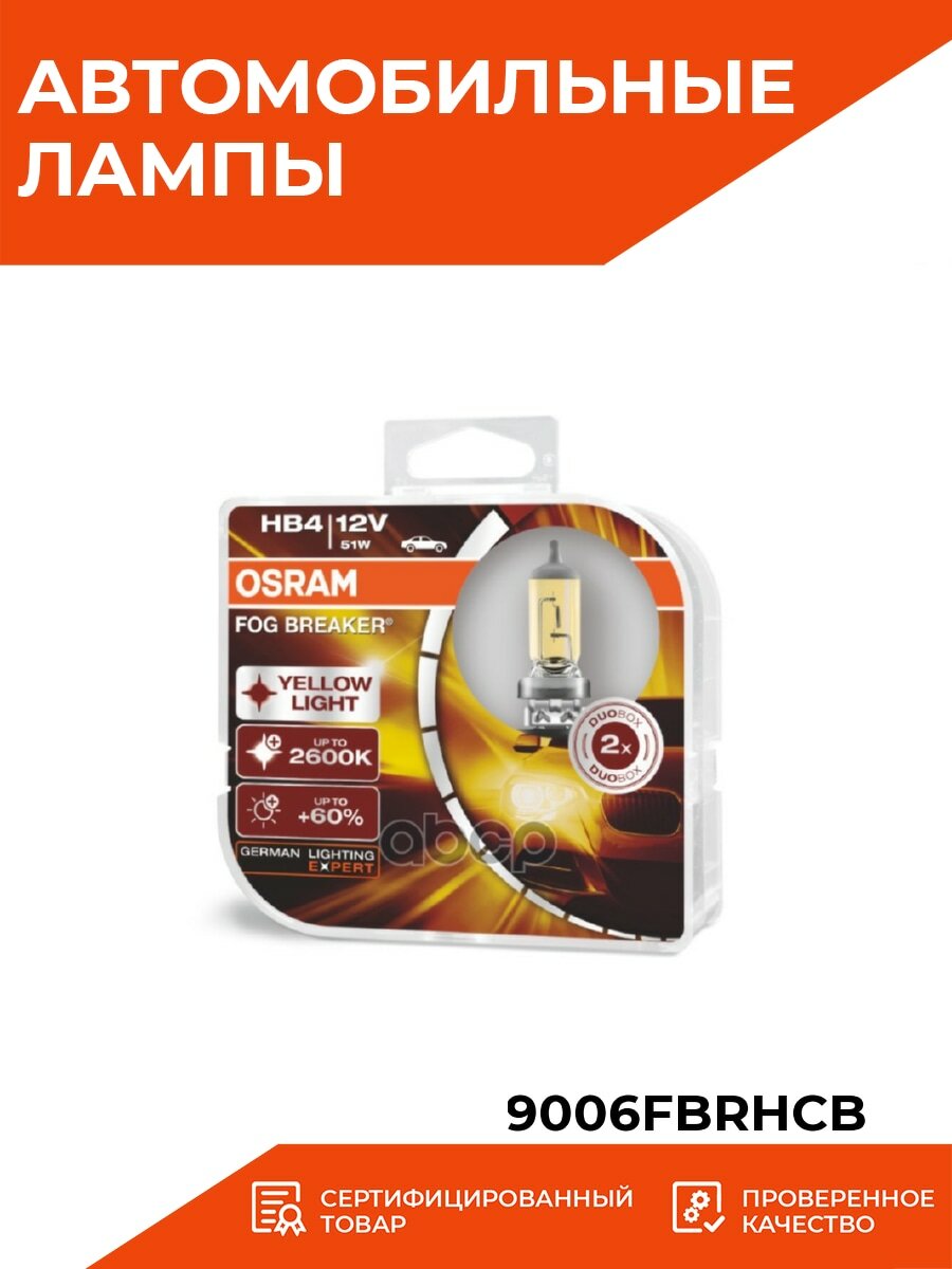OSRAM 9006FBRHCB (9006FBRDUOBOX / HB4 / L12251Y) комплект ламп hb4 12v 51w p22d fog breaker +60% больше света, 2600к 2шт.(1