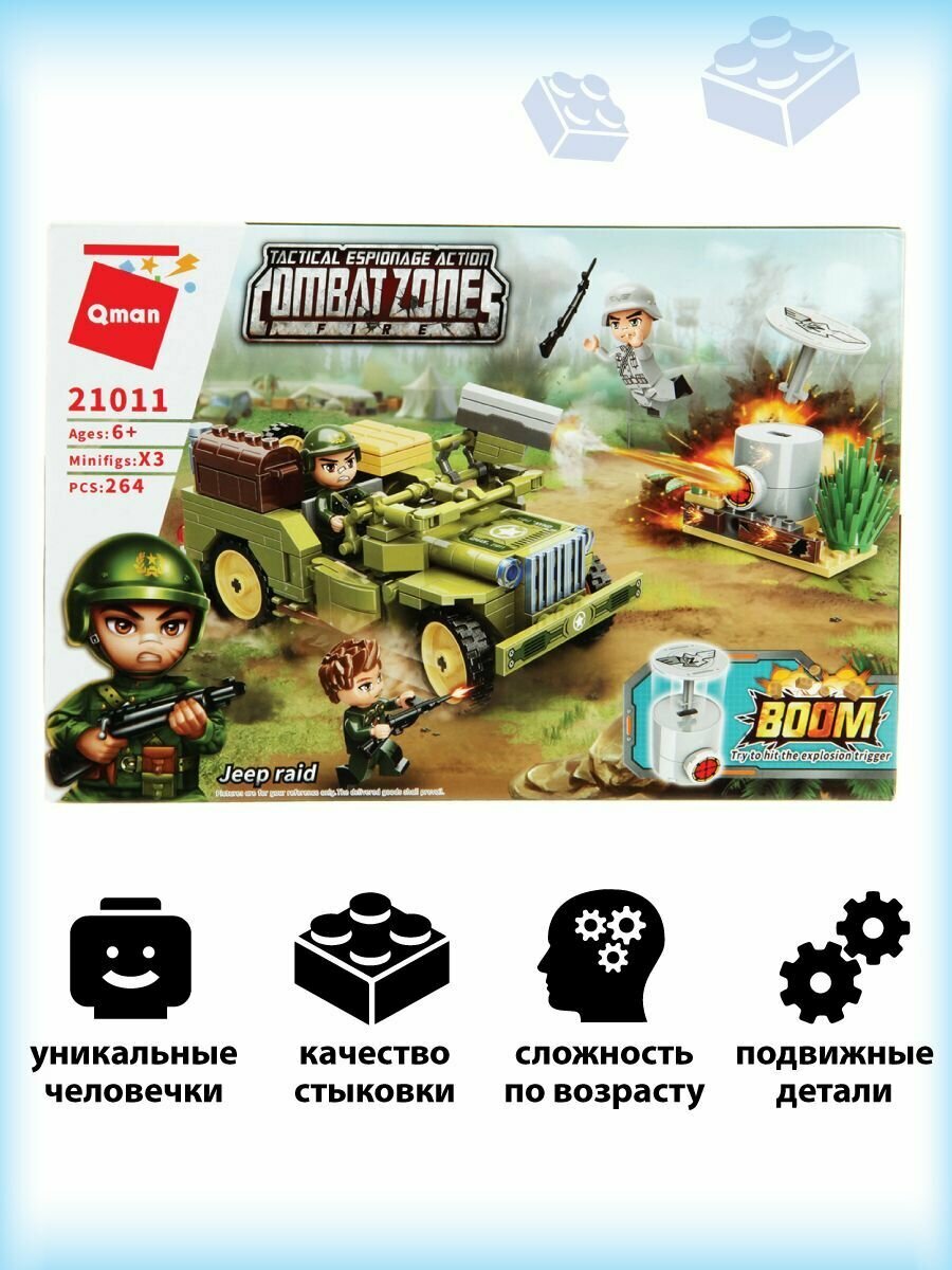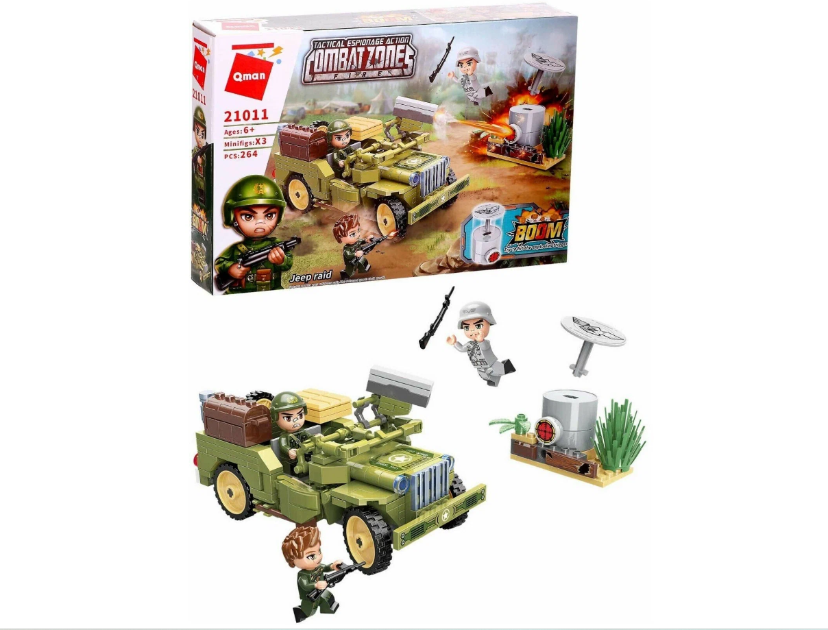 Конструктор пластиковый серии Боевая зона "Военный джип" 264 детали Qman 21011