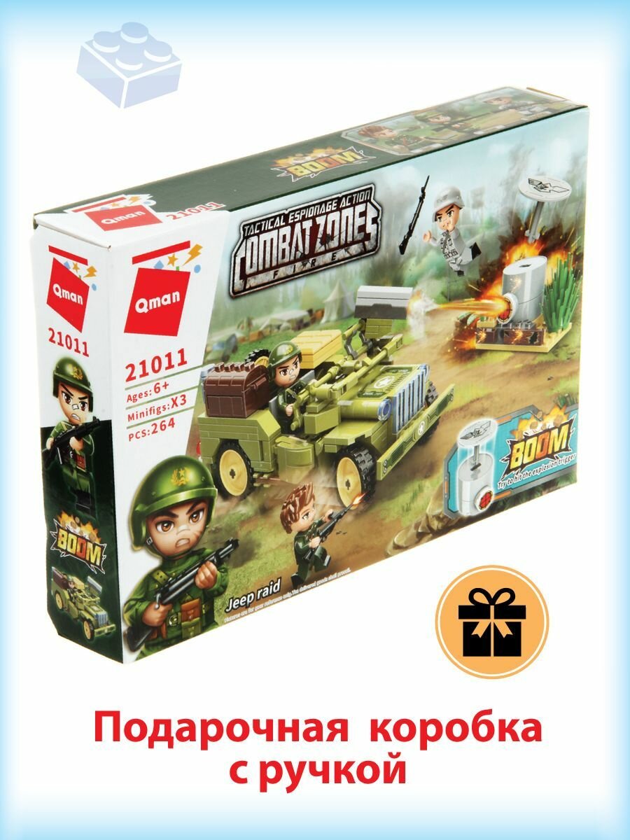 Конструктор Qman 264 дет. Джип-рейд (+фигурки, пластик, в коробке, от 6 лет) 2031741/21011, (Huada T