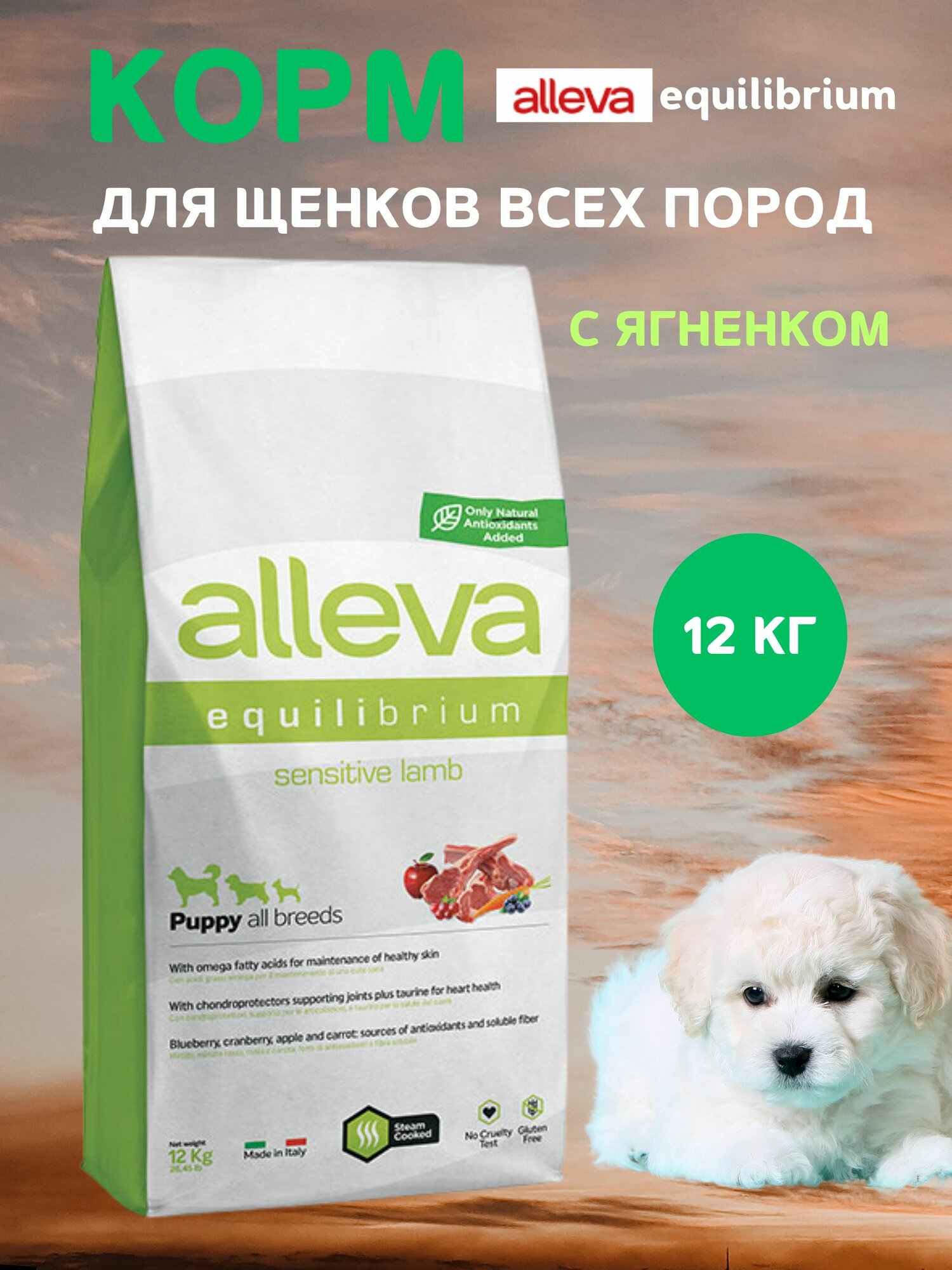 Купить [115.486] ALLEVA Эквилибриум для щенков всех пород Сенситив с ягненком 12 кг