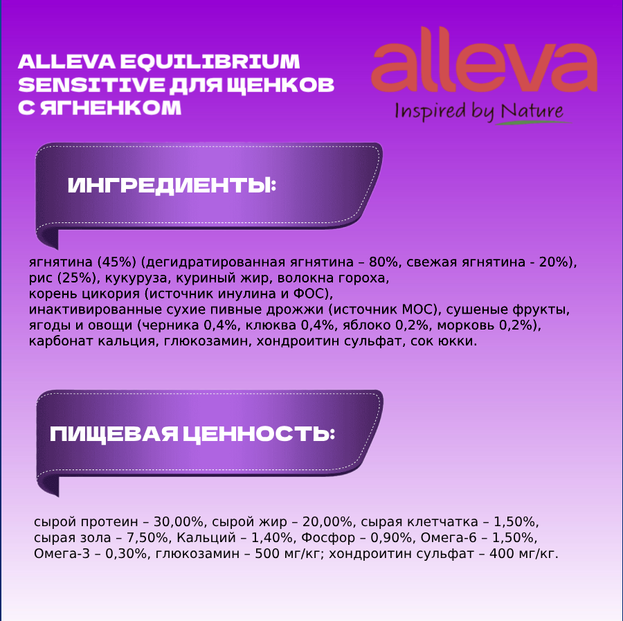 Сохранить[115.486] ALLEVA Эквилибриум для щенков всех пород Сенситив с ягненком 12 кг интересное:
