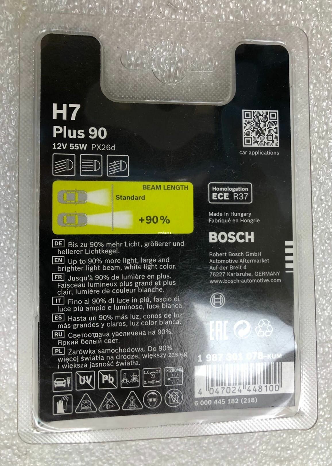 BOSCH 1 987 301 078 Лампа H7 Plus 90 12V 55W блистер 1 шт.