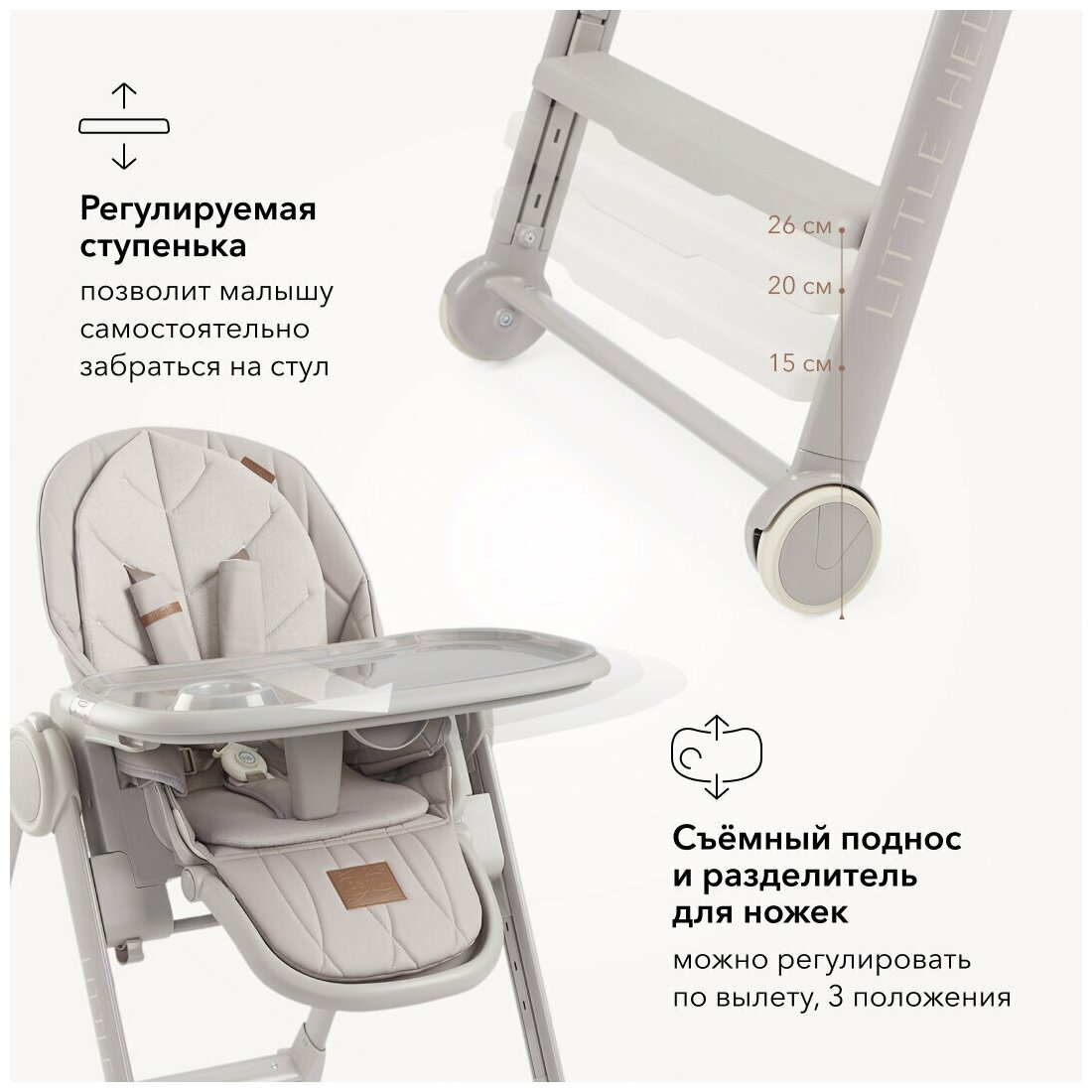 Стульчик для кормления Happy Baby Berny Lux до 25 кг, шезлонг, 4 повротных колеса, бежевый