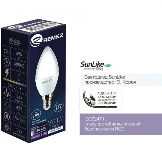 Лампа светодиодная Remez RZ-114-C37-E14-7W-5K, E14, C37, 7 Вт, 5700 К интересное: