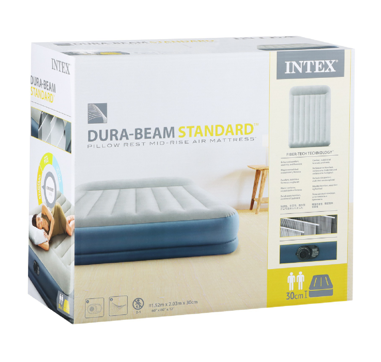 Кровать надувная Intex Pillow Rest Mid-Rise Airbed 152x203x30 см, 220V