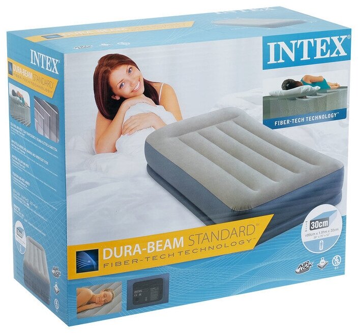 Кровать-матрас Intex Twin Pillow Rest Mid-rise Airbed With Fiber-tech BIP,эл/н220V,191х99х30 (64116n .