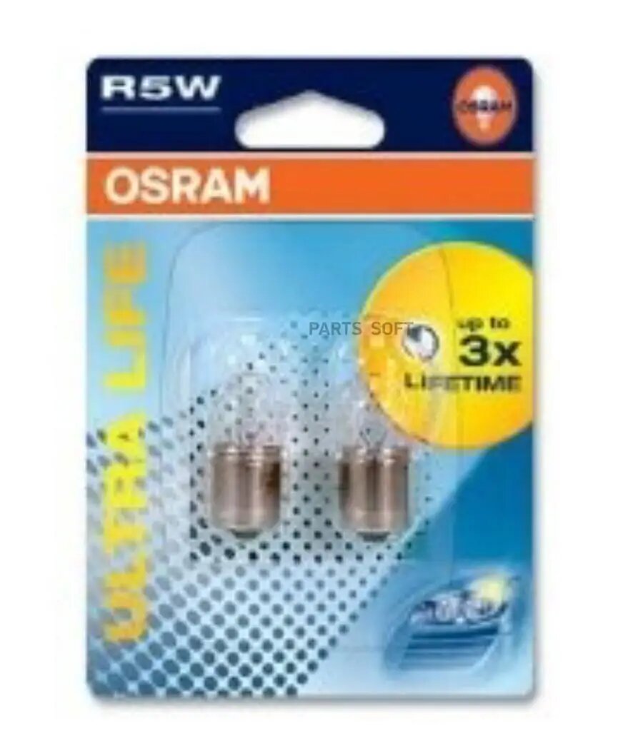 Комплект ламп накаливания блистер 2шт R5W 12V 5W BA15S ULTRA LIFE (в 3 раза увеличен срок службы по сравнению со стандартной лампой), 5007ULT02B OSRAM 5007ULT-02B