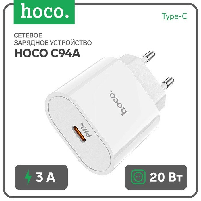 Сетевое зарядное устройство HOCO C94A 1xUSB-C, 3.0A, 20W, белый