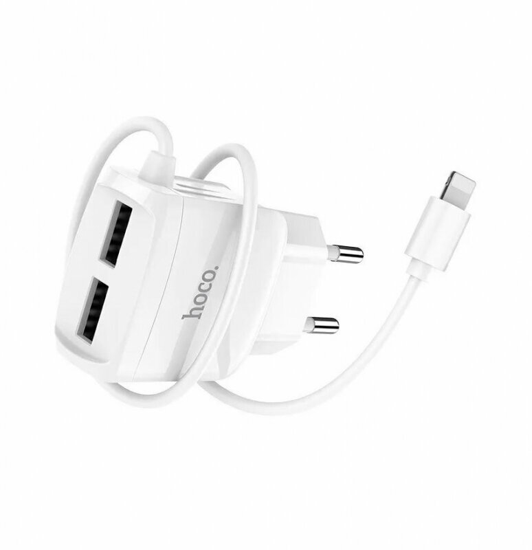 Сетевое зарядное устройство HOCO C59A Mega Joy 2xUSB с Кабелем Lightning, 2.4A, 10.8W, белый