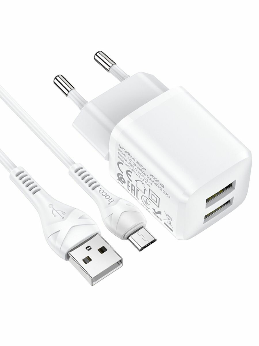 Зарядное устройство HOCO N8 Briar 2*USB + Кабель USB-Micro, 2.4A, белый