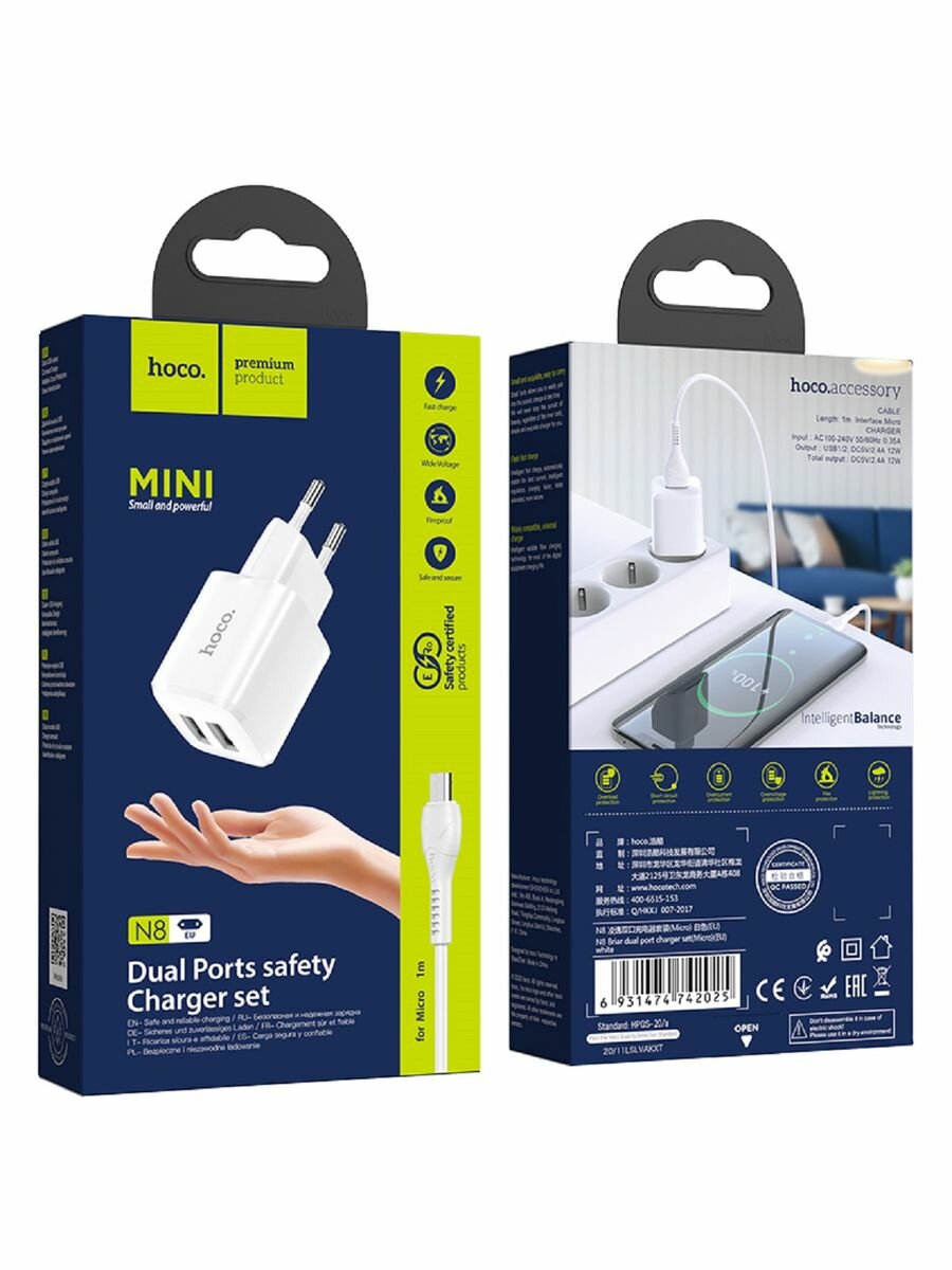 СохранитьСЗУ, 2 USB 2.4A 12W (N8), HOCO, Micro, Умная зарядка, белый интересное: