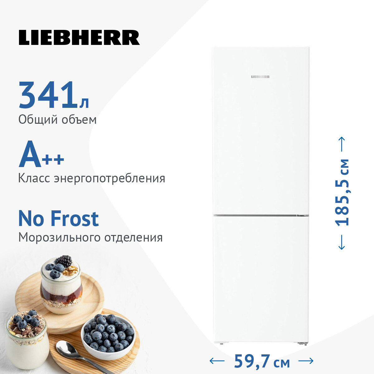 Холодильники LIEBHERR/ Plus, EasyFresh, МК NoFrost, 3 контейнера МК, в. 185,5 см, ш. 60 см, класс ЭЭ A++, внутренние ручки, белый цвет