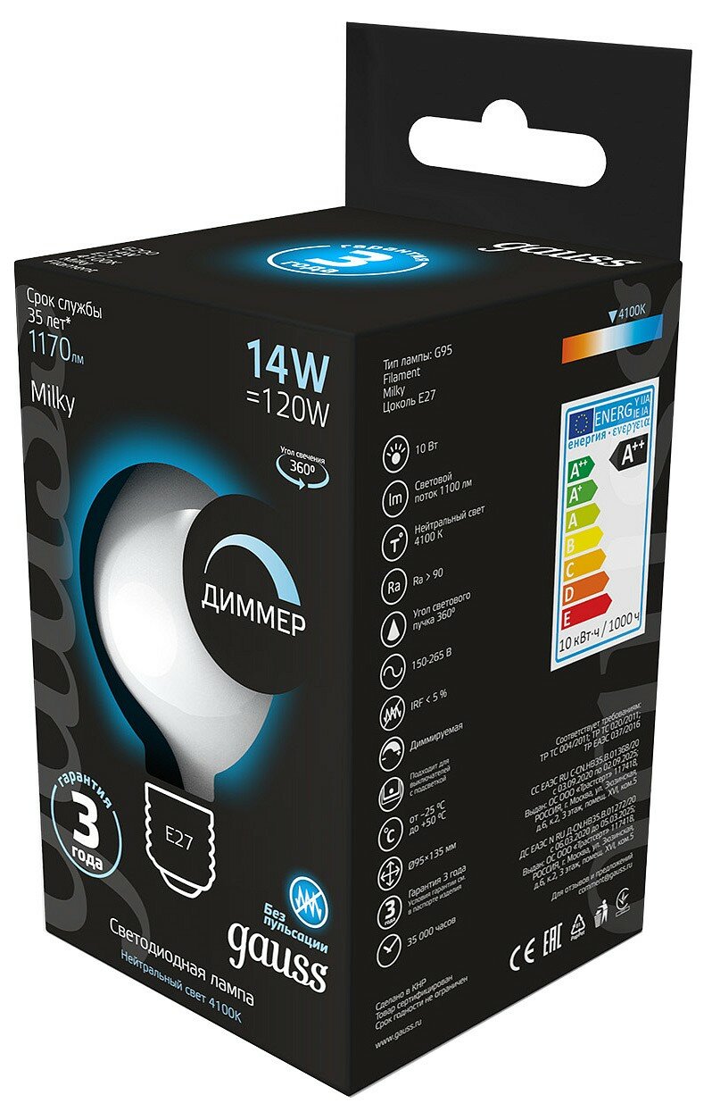 Ниже Вы можете прочитать отзывы на Лампа светодиодная филаментная диммируемая Gauss E27 14W 4100К матовая 153202214-D, ознакомится с подробными характеристиками, посмотреть интересные обзоры и фотографии на Лампа светодиодная филаментная диммируемая Gauss E27 14W 4100К матовая 153202214-D.