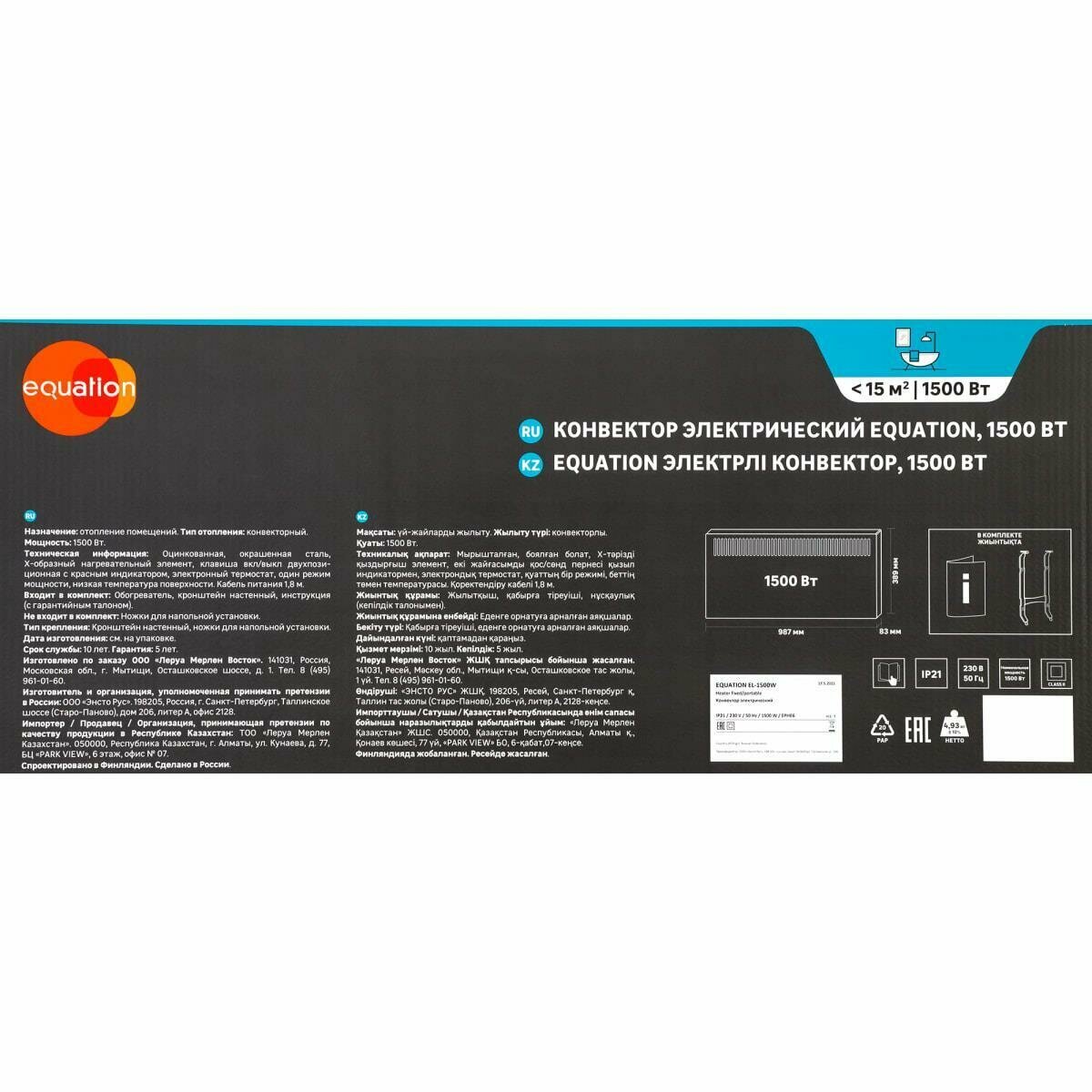 Конвектор Equation EL-1500W с электронным термостатом, 1500 Вт интересное: