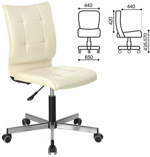 Кресло BRABIX Stream MG-314, без подлокотников, пятилучие серебристое, экокожа, бежевое, 532078