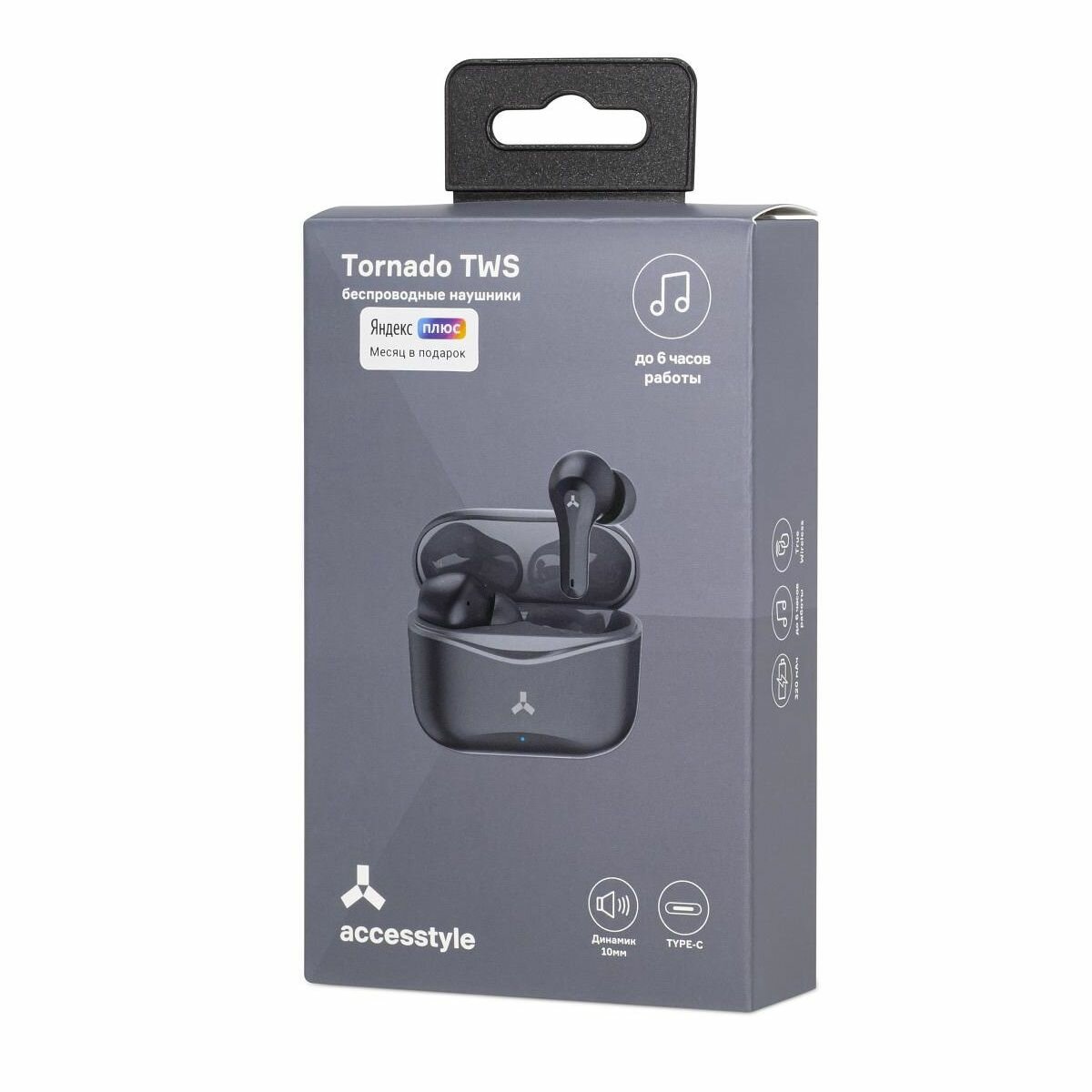 Купить Наушники Accesstyle Tornado TWS Wireless, беспроводная зарядка, до 6 часов, черные