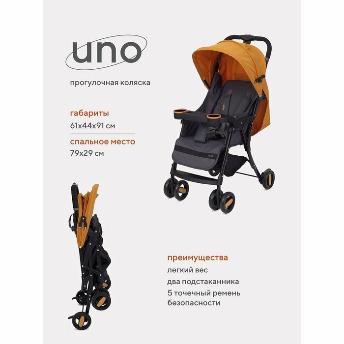 Коляска детская "UNO", прогулочная, с регулируемой спинкой, складывается, цвет желтый