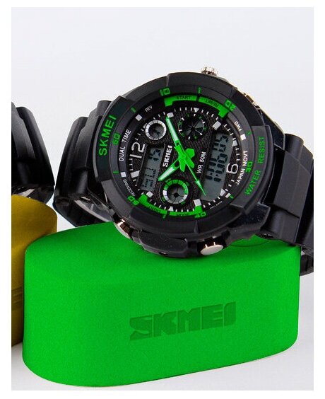 Часы наручные мужские электронные спортивные SKMEI водонепроницаемые, с будильником и секундомером, черные/зеленые